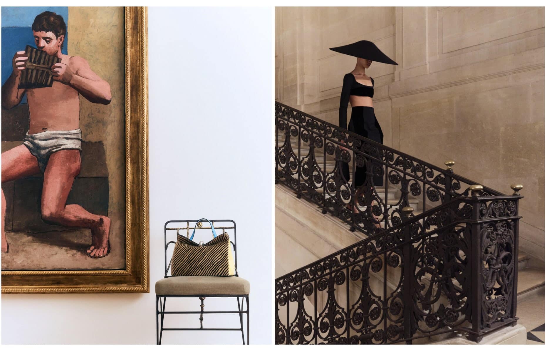 Depuis 2006, Simon Porte Jacquemus construit une identité d’une cohérence absolue : beige, blanc cassé, terracotta, bleu Méditerranée en accent. Jamais de noir profond. Son territoire visuel s’articule sur un véritable minimalisme architectural sur fond de lumière provençale, une poésie simple et une sensualité solaire. En 17 ans, Jacquemus n’a jamais dévié de cet univers. Donc, en voyant une image beige ensoleillée avec une silhouette minimaliste, votre cerveau identifie Jacquemus en seulement quelques secondes, avant même de voir le logo.